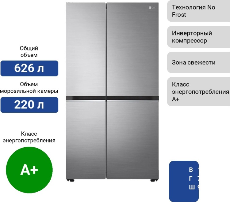 Представляем вам холодильник LG GC-B257SMZV — идеальный выбор для тех, кто ценит простор и эффективность в хранении продуктов. С его общим объемом 626 литров и двумя камерами вы сможете удобно разместить все необходимые продукты и напитки.