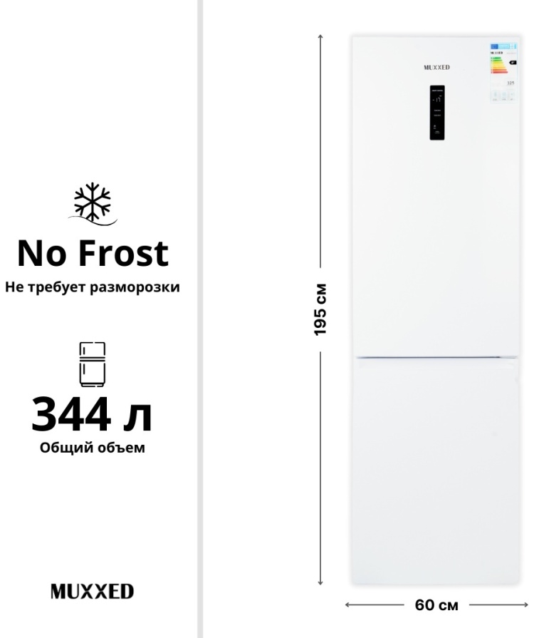 Muxxed M SRD-489CBE W -современный и вместительный холодильник с чистым белым корпусом.