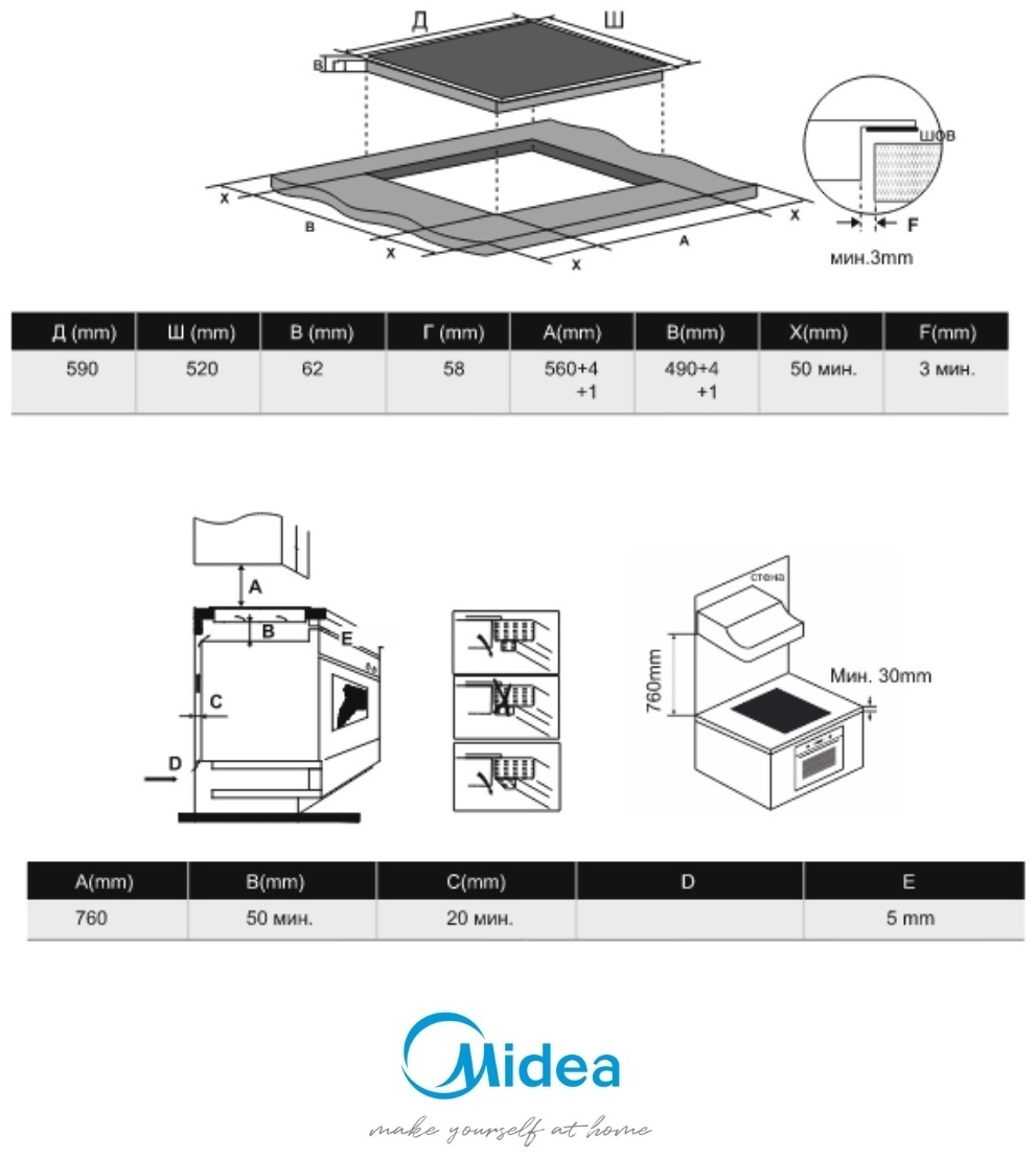 - Размеры для встраивания (ШхГ)